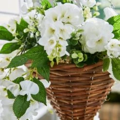 Artificial White Bay Tree With Floral Base In Square Black Plastic Plant Pot