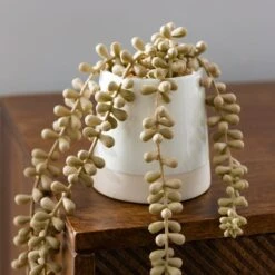Artificial Trailing Sedum Burros Tail In Speckled Ceramic Plant Pot