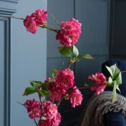 Embrace the perennial beauty of our Artificial Cherry Blossom. The vibrant flowers with green leaves offer a year-round burst of colour. For a statement look, place them in a large vase and let the blossoms create an enchanting focal point in your home.