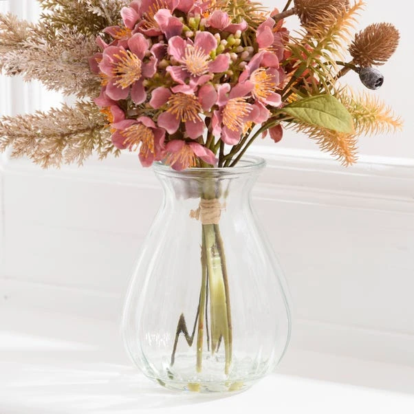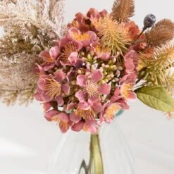 Experience modern elegance with our Artificial Dried Pink Hydrangea and Pampas Bouquet in a Glass Vase. The on-trend arrangement features realistic details and beautiful colours, making it a stunning addition to any corner of your home.