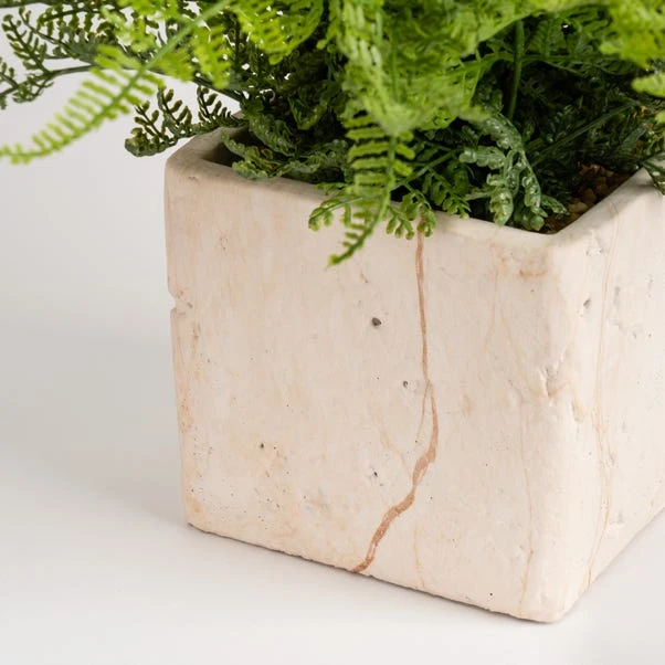 This artificial fern is the perfect way to bring nature indoors and add a splash of evergreen colour to your space without the need for watering or maintenance. The cement pot, styled on luxurious Travertine stone, adds a rustic, upscale feel, and its versatile size means it’s ready to display wherever you would like: on a windowsill, desk, bookshelf or side table.