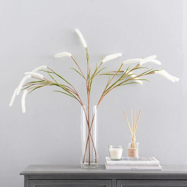 Boasting a stylish look, this artificial foxtail grass spray will bring a modern feel to the home with its luscious cream colourway that will complement an array of decors. As it is artificial, this spray is maintenance free and ideal for weddings or home décor.