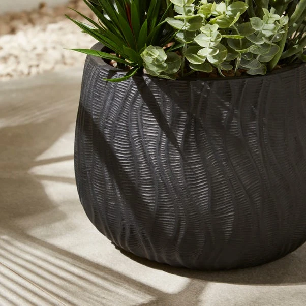Elevate your outdoor decor with the sleek Artificial Green Mixed Plants in a Black Plastic Plant Pot. With its modern pot design and lifelike greenery, this UV-resistant arrangement is perfect for enhancing your garden or patio. Enjoy all the beauty of real plants without the hassle of maintenance—just take it indoors during severe weather.