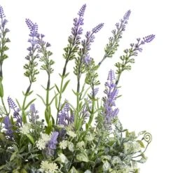 Add a touch of whimsy and sophistication to any space with this beautiful artificial lavender arrangement. Crafted from robust materials, this artificial lavender plant complete with basket, can be mounted onto exterior walls to create an enchanting display.