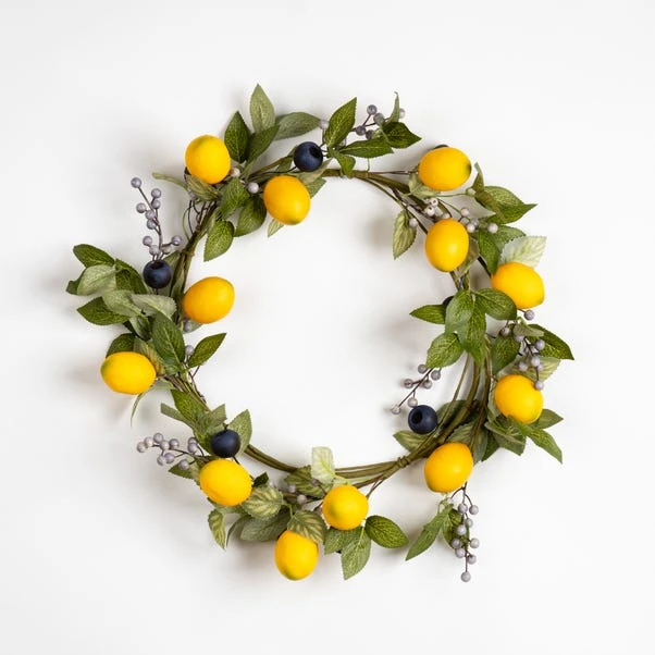 This artificial lemon & berry wreath brings a burst of sunshine into your home with its lively colours and natural-inspired design. Perfect for front doors, walls, or even as a striking dining table centrepiece, it adds a fresh, seasonal touch to any room. Its cheerful look makes it a thoughtful gift for loved ones, spreading joy wherever it’s placed. Just remember to bring it indoors during bad weather to keep it looking its best.