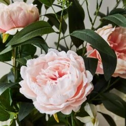 Stunningly displayed, this arrangement contains a mixture of realistic artificial flowers, including pale pink Peonies, white Wisteria and green foliage for a pop of colour. Stems are fixed inside a beautiful clear glass handkerchief vase. Fantastic for an all year round display or as a gift. There’s no need for any maintenance, just wipe clean with a soft cloth!