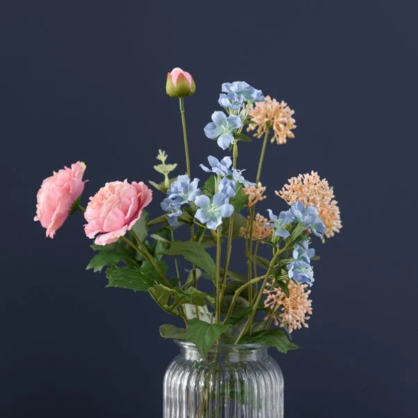 Add a touch of romance with our Artificial Pink Ranunculus Bouquet in a Ribbed Glass Vase. The gorgeous arrangement of pink ranunculus flowers, showcased in a classic ribbed glass vase, becomes a timeless centrepiece that looks beautiful all year round, adding a delicate charm to any corner of your home.
