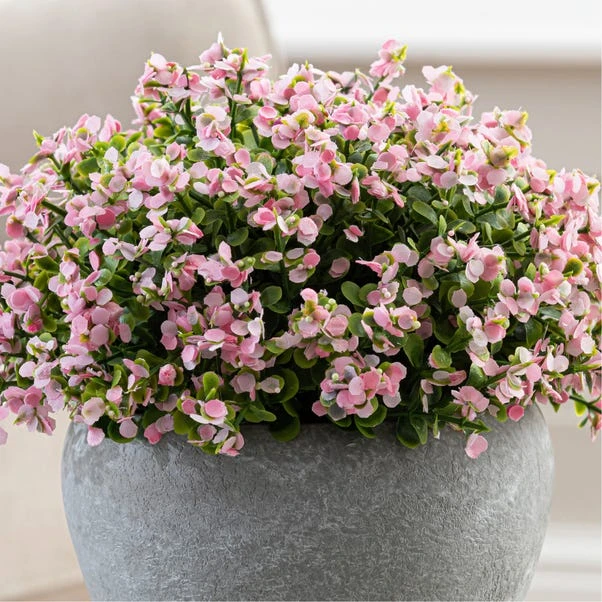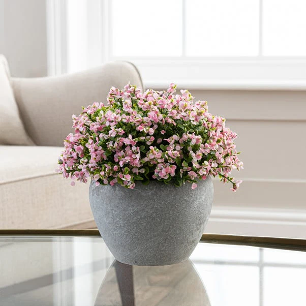 Artificial Pink Flowers In Grey Cement Plant Pot
