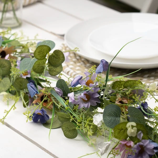 The Artificial Purple Spring Florals Garland adds a touch of seasonal charm to any space. With daisies and lavender nestled among green foliage, this delicate garland is perfect for Spring tablescapes, bedroom décor, or weddings.