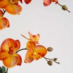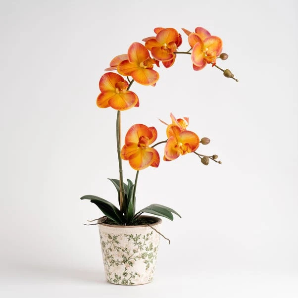 This vibrant orange real touch orchid is a great way to bring a pop of colour to your interior. The ceramic pot features a beautiful green floral design and crackle glaze finish. It’s ready to place wherever you would like to bring colour and life to your space, and with no maintenance required.