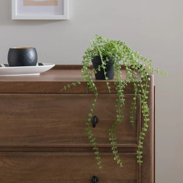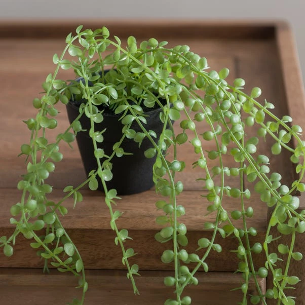 This artificial Ficus Pumila comes with a black plastic plant pot, ready to place in your favourite decorative planter. Perfect for trailing from a high shelf or mantel, the realistic foliage will bring movement and colour to your space with no maintenance required.