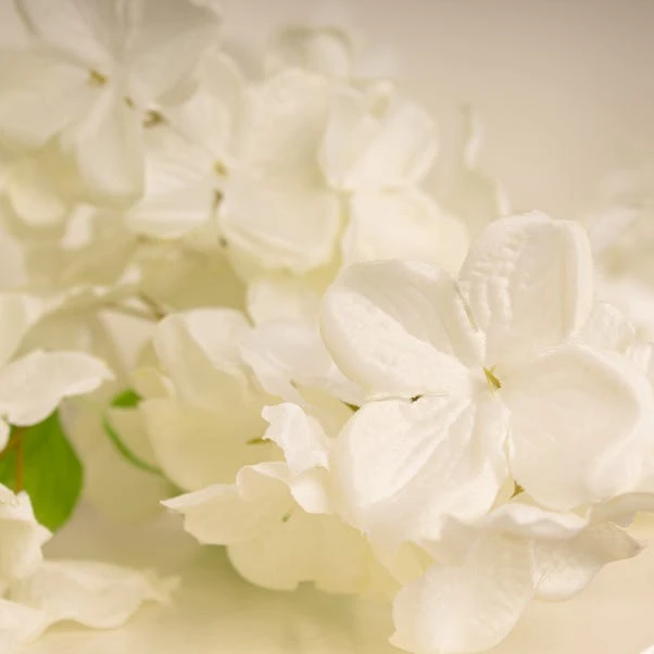 - Soft fluffy white trailing hydrangea flowers