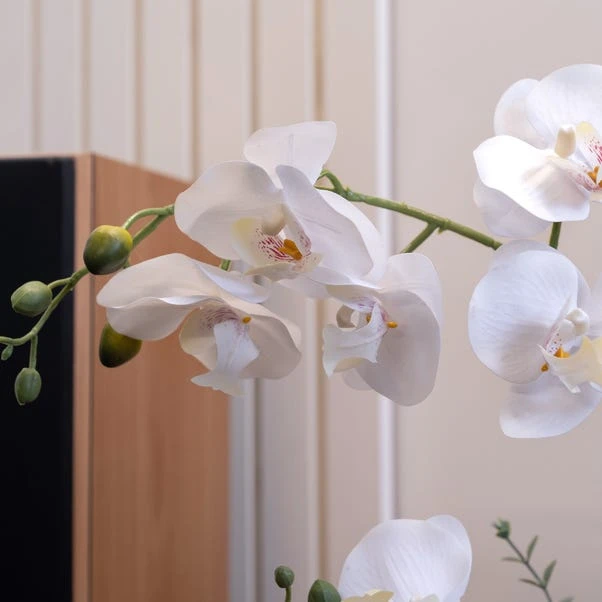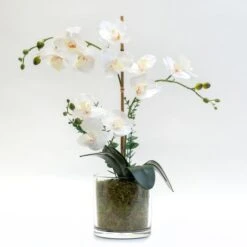 Enhance your indoor garden with this stunning, elegant Artificial Orchid, with real touch petals, set inside a moss-filled glass pot. Featuring life-like orchid stems, this piece can be easily bent and styled as you wish.