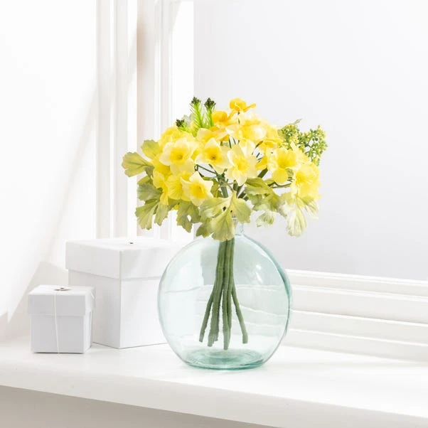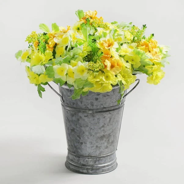 Beautifully crafted, this artificial bundle feature bright yellow primula and narcissus flowers with green foliage. Made from durable materials, this realistic looking bundle will add the classic spring look to your decor.