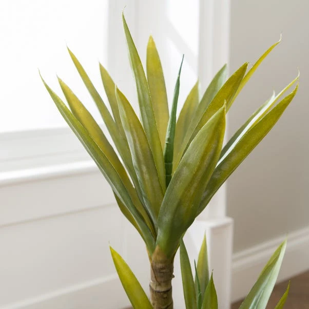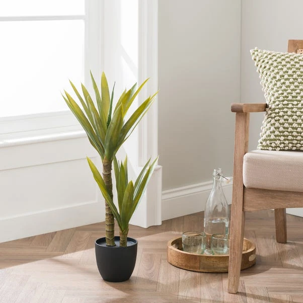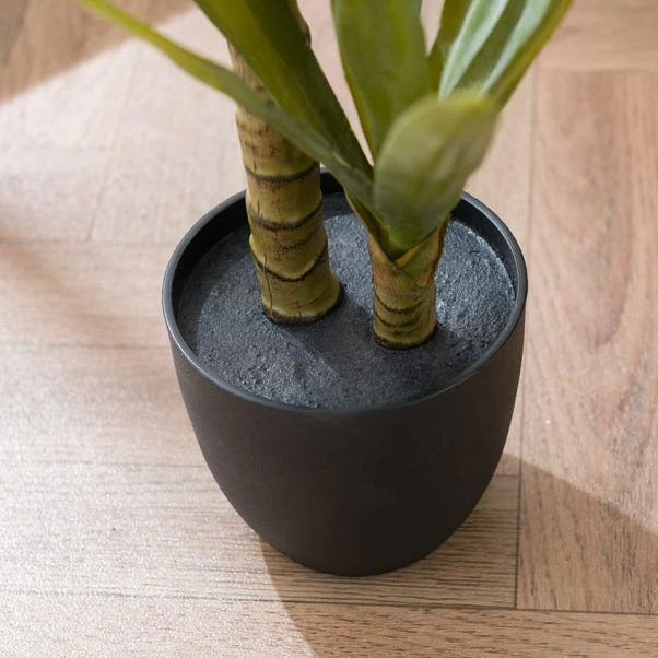 This artificial yucca plant is a great way to add natural colour and interest to your space without mastering watering requirements and re-potting. It comes with a black plastic plant pot – simply place in a decorative plant pot for a versatile décor piece.