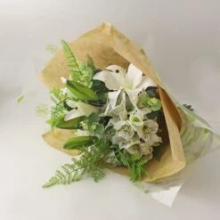 Our elegant realistic bouquets consist of Eucalyptus, Lily, Muscari and Blossom flowers. These would be perfect to display in your home or as a gift.
