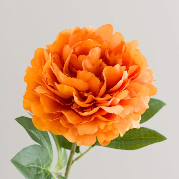Bring a burst of colour into your home with this striking orange peony stem. Its vibrant hues and realistic design make it an eye-catching addition to any room, while its low-maintenance nature means it stays beautiful all year round. This colourful stem is the perfect way to add a touch of floral elegance to your space, whether displayed on its own or mixed with other faux flowers for a truly stunning arrangement. Its versatile design makes it ideal for a variety of interior displays, from mantles to tables. Brighten up your home effortlessly with this gorgeous peony stem. A simple way to inject life and colour into any space.