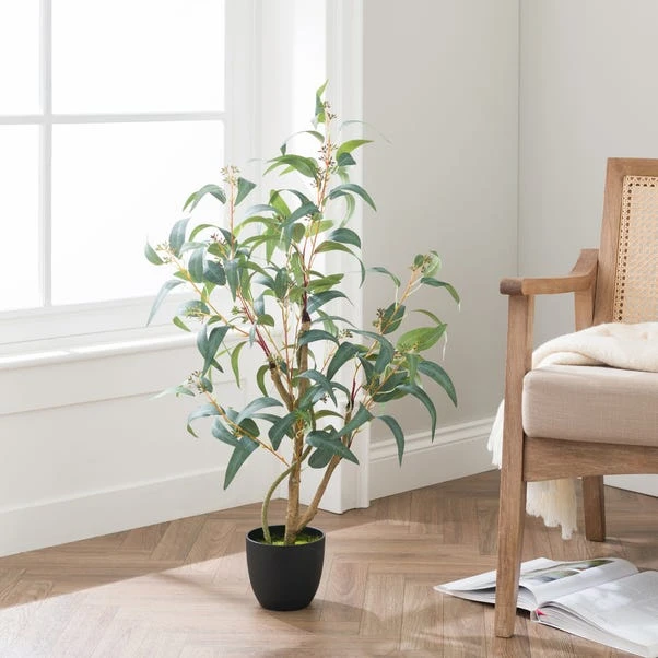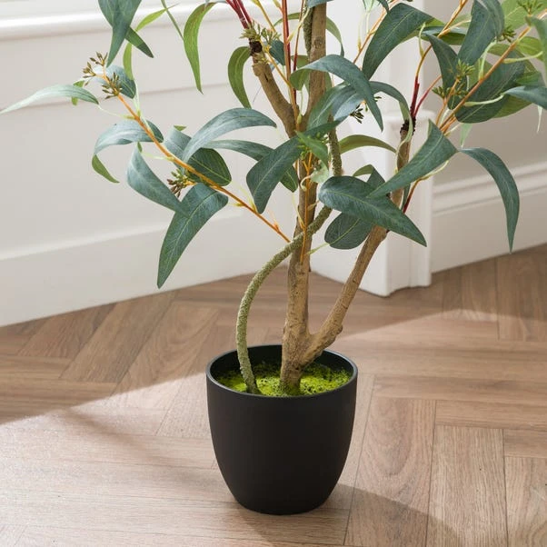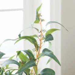Bring a touch of greenery into your home with this Seeding Eucalyptus Tree in a sleek black pot. Its realistic design ensures a lifelike look, while the luscious green leaves stay vibrant all year round with no upkeep required. This low-maintenance tree is a beautiful decorative item, perfect for adding a fresh, natural feel to any space. Whether placed in your living room or hallway, it’s an effortless way to brighten up your home. The stylish black pot complements any interior, enhancing the tree’s elegant appeal. Add a timeless, nature-inspired touch with this charming eucalyptus tree.