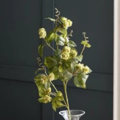 Artificial Green Hydrangea And Eucalyptus Bouquet In Ribbed Glass Vase